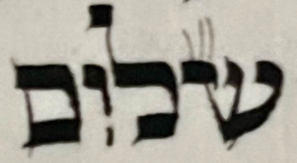 Or maybe God was deeply pained by human impulsivity? So wrote 20th century Ukrainian rabbi Zalman Sorotzkin: “The vav is sliced because this ‘peace’ came by spilling blood. The Holy Blessed One does not rejoice even in this downfall of evil. Thus, God’s pain is expressed by slicing the vav of shalom, which is the very Name of God.”
